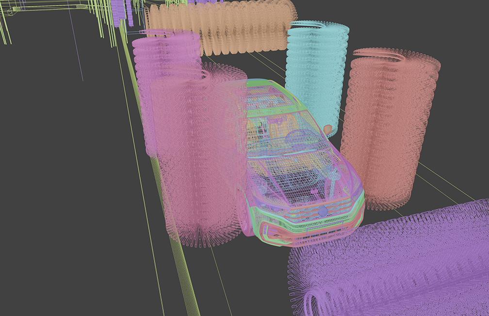 Inside, a series of stunning 3D renderings and high-definition imagery brought BC’s rugged beauty to life, drawing in elements of Indigenous cultural symbols and stories. With each stage, the tactile qualities of water, foam, and soap amplified the textures of the wilderness - from the rough bark of evergreen forests to the mist-laden atmosphere of coastal landscapes. As cars were coated with soap, a dynamic kinetic projection screen replicated the lighting effect of the northern lights on the windshield, while rotary brushes, designed to mimic towering evergreens, moved in harmony with the landscape visuals. A rainforest-inspired downpour rinsed the car, mirroring the intensity of BC’s iconic storms, before the cars were dried in a volcanic wind area, made to look and feel like a desert, completing the sensory journey.